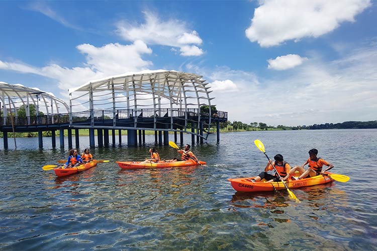 At Camelot Outdoor Adventures, you can gather up friends to kayak across the calm waters of Lower Seletar Reservoir. Connect with nature and with some luck, you might even spot some of the reservoir’s inhabitants, like the white-bellied sea eagle, peacock bass, collared kingfisher and golden-apple snails.