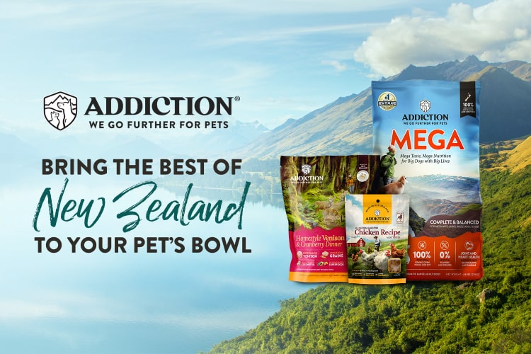 Made of premium meats, Addiction uses alternative veterinarian-recommended protein sources from free-range and cage-free animals raised without antibiotics or hormones. Fruits and vegetables are also organically grown, free from insecticides and chemical fertilisers.